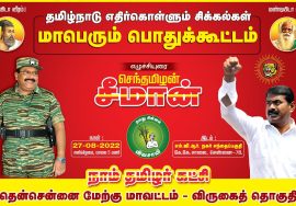 Contact us to Add Your Business அறிவிப்பு: ‘தமிழ்நாடு எதிர்கொள்ளும் சிக்கல்கள்’ என்ற தலைப்பில் 27-08-2022 சனிக்கிழமையன்று மாலை 05 மணியளவில் நாம் தமிழர் கட்சியின் தென்சென்னை மேற்கு மாவட்டம்