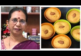 Eggless Almond saffron Cup Cake / முட்டை சேர்க்காத பாதாம் குங்குமப்பூ கப் கேக் – ஓவனே தேவையில்லை